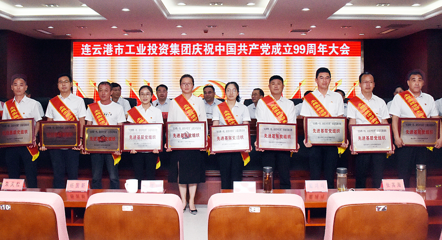 大會播放了《疫線黨旗紅——連云港市工業投資集團戰疫紀實》專題片,組織部分新黨員集體宣誓。對“黨旗飄一線、戰疫沖在前”主題實踐活動中涌獻出的10個先進基層黨組織和20名先進個人進行了表彰。