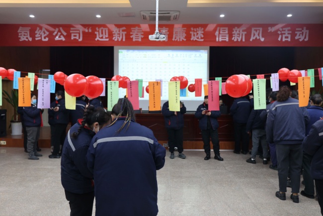 2月7日,新春佳節來臨之際,杜鐘氨綸公司紀委組織“迎新春 猜廉謎 倡新風”活動。職工歡聚一堂,通過謎語廉潔相結合的形式共同迎接龍年。