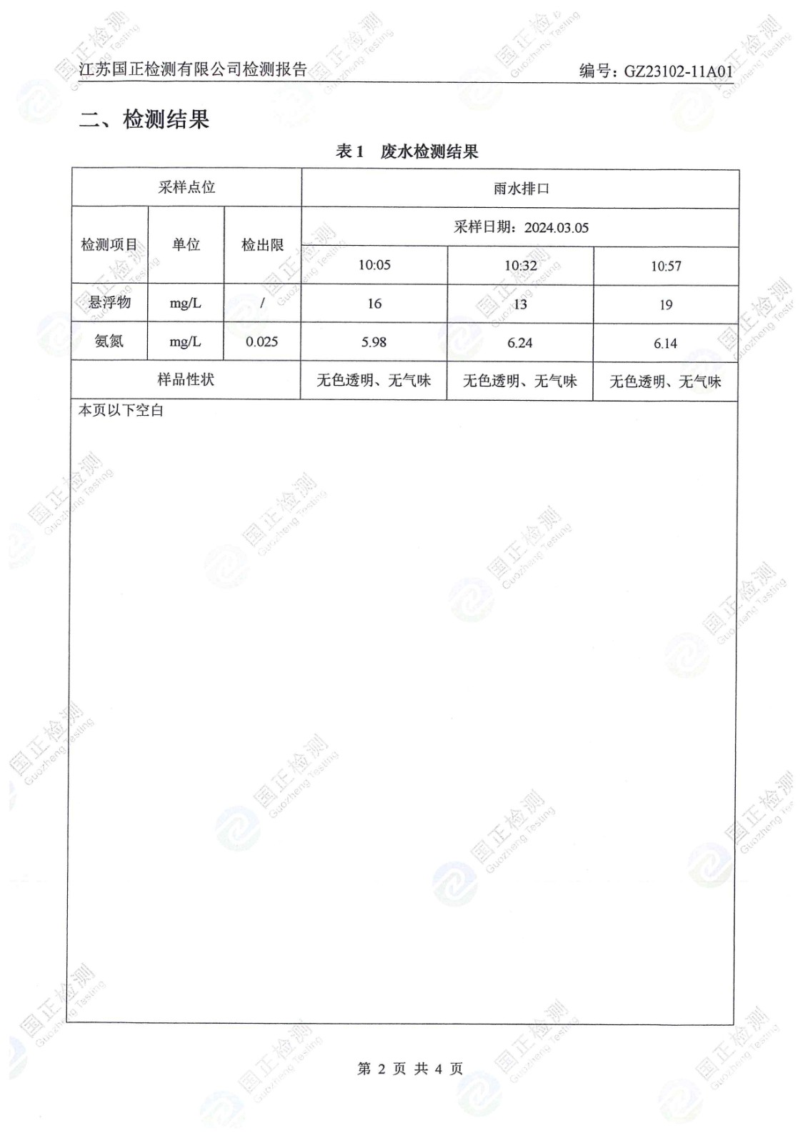 杜鐘氨綸2024年3月雨水檢測報告