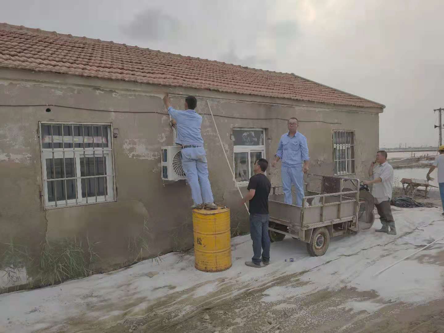 高溫酷暑、炎炎烈日下,在日曬制鹽的灘頭到處都是大汗淋漓、被曬得黝黑的鹽工們,因為他們的堅守和辛勤付出,才有了公司屢創佳績的今天。“值班室太熱了,夜間值班無法休息。”鹽工有訴求,組織有回應,公司為此按程序集中采購了一批空調。為能更快更好將空調安裝至各班組值班室,維護工們不辭辛勞與安裝人員一起加班加點,現已全部安裝到位。