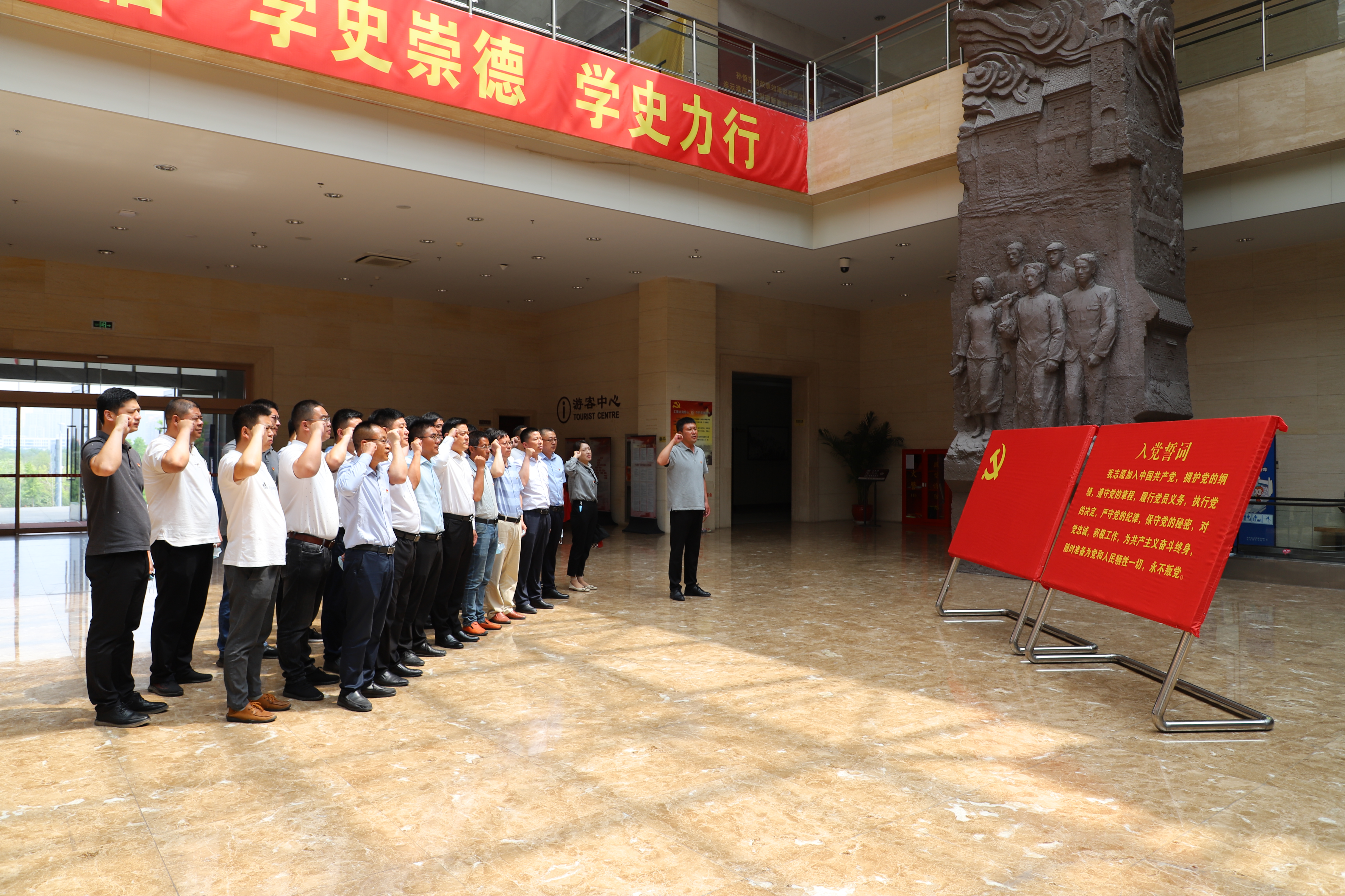 在連云港市革命紀念館,大家在講解員引導下,依次參觀了五四運動時期展廳、土地革命時期展廳、抗日戰爭時期展廳。認真觀看館內歷史圖片、影像資料、珍貴遺物,并在展館內重溫入黨誓詞,感受港城人民保衛家園、爭取解放、英勇奮戰的大無畏精神,把連云港從一窮二白、百廢待興走向欣欣向榮、繁榮富強的發展歷程。