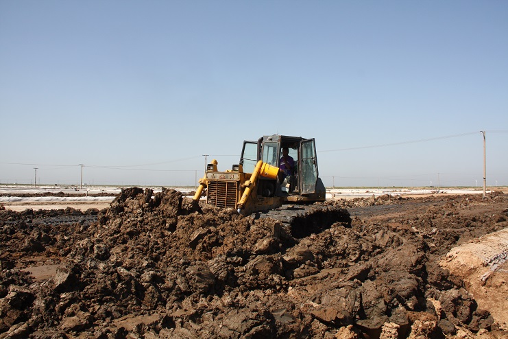 據了解,這次土地復墾區域位于埒南制鹽分公司西部的鈣液復曬區鹽灘,參與復墾整理的鹽田面積有1180畝。在此之前,公司有關部門已經完成了測量、設計、報批等工序,目前已經進入推除結晶區表層土階段,下一步,該復墾工程還要開展清淤、涼曬、回填等土方工程。工程施工結束后,再經過整平、翻耕、泡田、撒肥等工序,直至土壤指標符合栽種才算完成,預計整個工程一直要持續到明年的4月底才能結束。(封楊)
