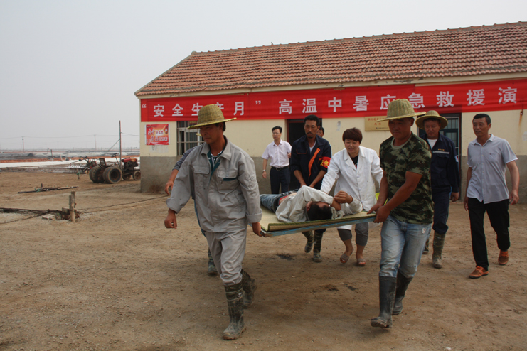 為了加強公司全員的安全預防意識,增強應對緊急事件的自我保護和防衛能力, 6月29日上午,灌西投資公司在新河制鹽分公司九班聯合舉行“高溫中暑應急救援演練”活動,公司副總經理古浩光、各單位分管安全領導、日曬制鹽一線班組長參加觀摩。