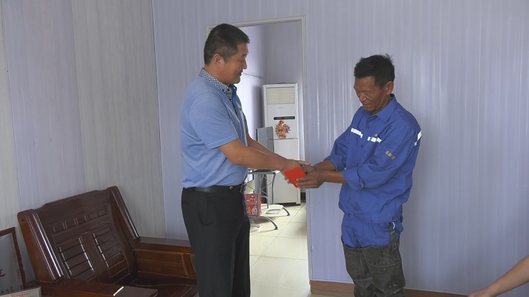 “現(xiàn)在身體還好嗎?兒子現(xiàn)在怎么樣?”在困難群眾于蘭英家里,王德志董事長一進門就關(guān)切的詢問她的生活狀況。“感謝公司黨委的關(guān)心和照顧,目前家里一切都好。”看到王德志董事長的到來,于蘭英有些激動的說道。