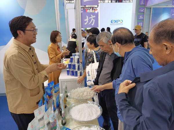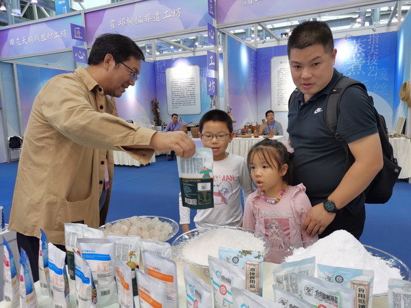 我公司代表集團參加本次展會,展示加碘精制鹽、顆粒鹽、雪花鹽、低鈉鹽等“古淮”“猴王”品牌的20余個食鹽品種,共接待2000多人次參觀。期間,省文旅廳黨組成員、副廳長錢鋼等蒞臨展位觀摩指導,對公司淮鹽文化傳承工作予以肯定。