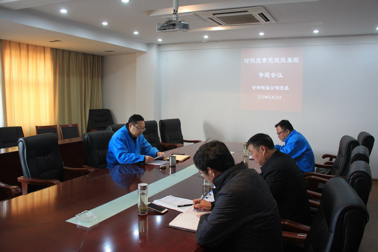 11月29日,我公司在二樓會議室召開對照黨章黨規找差距專題會。公司黨委班子成員參加會議,會議由黨委書記、董事長、總經理朱桂玉主持。