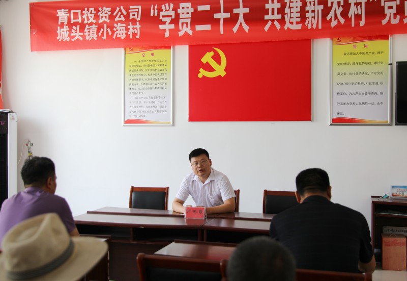 為推動黨的二十大精神在鄉(xiāng)村落地生根,6月28日上午,青口投資公司、城頭鎮(zhèn)小海村聯(lián)合開展“學(xué)貫二十大 共建新農(nóng)村”黨員課堂,由公司機關(guān)優(yōu)秀黨務(wù)干部組成的二十大精神宣講隊,走進(jìn)結(jié)對共建的贛榆區(qū)城頭鎮(zhèn)小海村開展集中式、通俗化宣講。公司黨委副書記、工會主席梁永,城頭鎮(zhèn)副鎮(zhèn)長王延光,城頭鎮(zhèn)小海村支部書記徐坤參加活動。