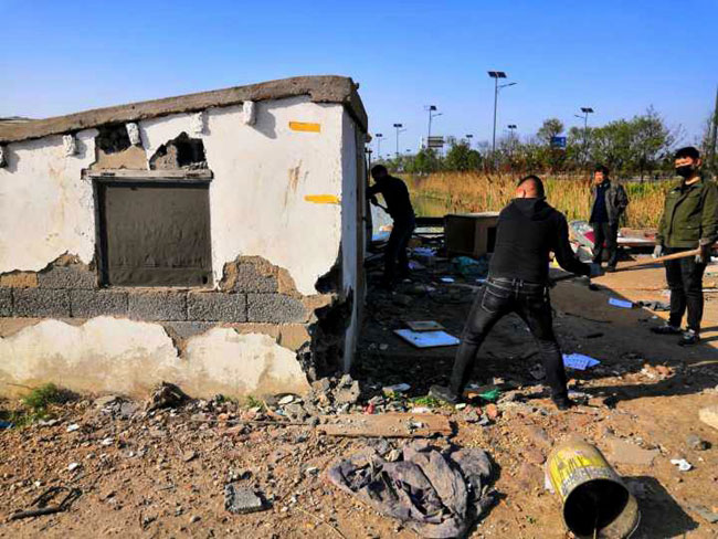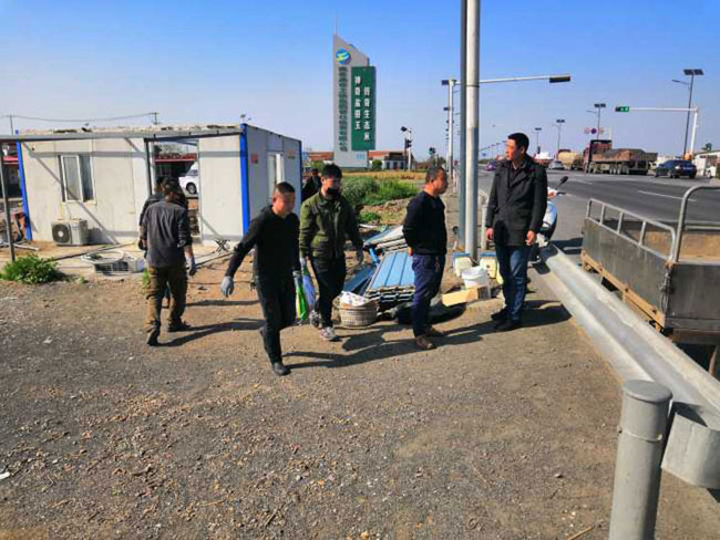 公司領(lǐng)導(dǎo)態(tài)度明確,一抓到底全面整治交通環(huán)境。摸清形勢,多次召開整治工作專項會議,安排部署整治行動 , 公司領(lǐng)導(dǎo)放棄節(jié)假日,現(xiàn)場辦公。三洋、黃沙、大新作為主要牽頭單位,主動扛起責(zé)任,挑起擔(dān)子,從泰祥公司抽調(diào)人力,大家齊心協(xié)力。按照時間節(jié)點,倒排工期,掛圖作戰(zhàn),針對現(xiàn)場工作內(nèi)容,制定 “三步工作法”。一是深入塘頭養(yǎng)殖戶面對面交流,講明利害關(guān)系,做通群眾思想工作,確保整治行動順利進(jìn)行;二 是 制定好拆除先后順序,調(diào)配需要的挖掘機(jī)、運(yùn)輸車輛等硬件設(shè)施,確保拆遷過程快速有力;三 是 對于已拆除的看護(hù)房,及時清理房屋碎石塊,筑牢地基,安排重建。