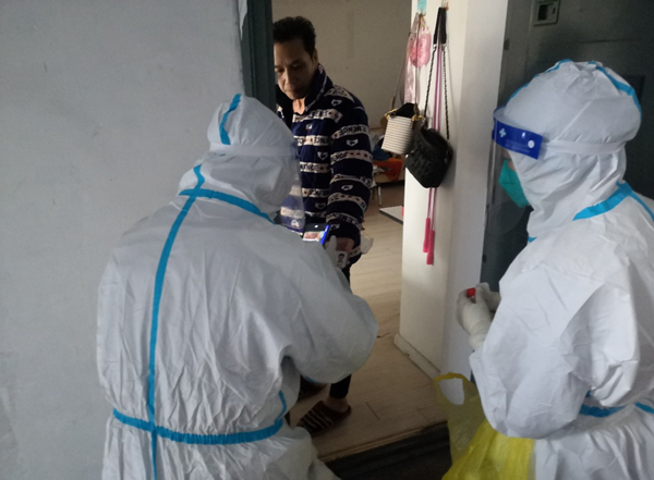 312日,黨曉峰主動與所在社區聯系,報名參加了社區抗疫志愿服務。每天,他都會到小區卡口執勤,防止人員流動;還會身穿防護服,與社區工作人員一起上門統計居民核酸檢測信息,這單元從一樓爬到頂樓,然后再爬隔壁單元,幾趟下來氣喘吁吁、汗流浹背。