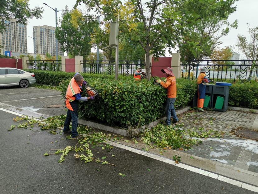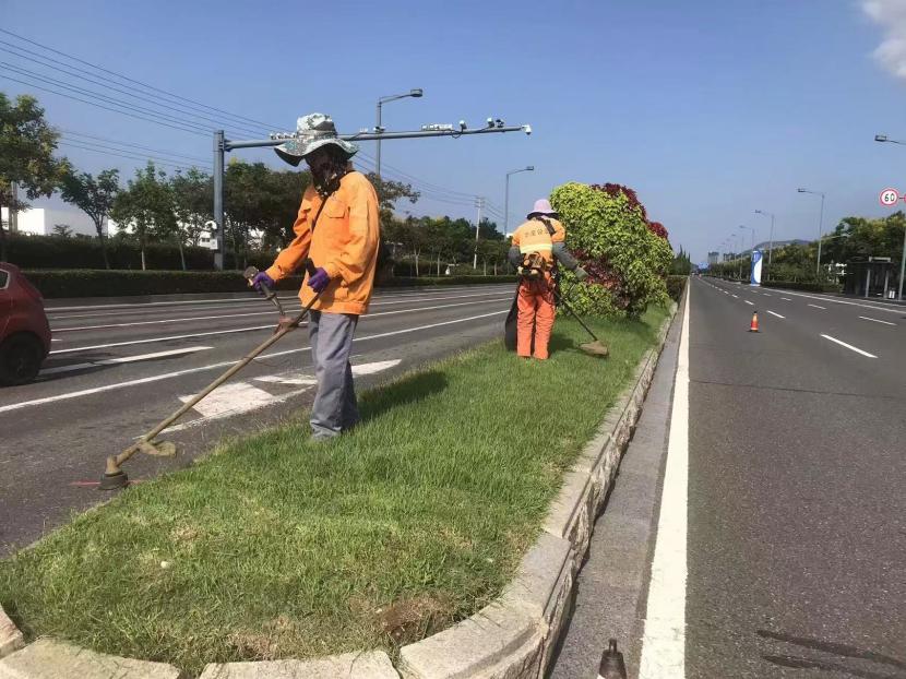 保障園區(qū)“塑新顏”。節(jié)日期間,開發(fā)區(qū)轄區(qū)的主干道上、公園、廣場、支路等公共綠地,隨處可見臺北(華茂)綠化養(yǎng)護人員堅守一線的忙碌身影,他們放棄與家人團聚,重點對玉竹路、佟圩路、銀臺路、242 省道等路段綠籬、模紋、草坪進行整形修剪,對堿廠南路等路段綠化帶內(nèi)低矮喬灌木進行打藥治蟲,對展覽中心、黃海大道等轄區(qū)內(nèi)及時清理綠化帶雜草、撿拾草根、干枝等綠化垃圾,保持綠化帶干凈整潔美觀。益豐園林分公司綠化班全員放棄節(jié)日休假,外拓市場,與綠化分公司聯(lián)動赴徐圩消防大隊院內(nèi)開展突擊修剪行動,他們不怕臟、不怕累,共修剪灌木球50余棵,灌木叢7000余平方米。
