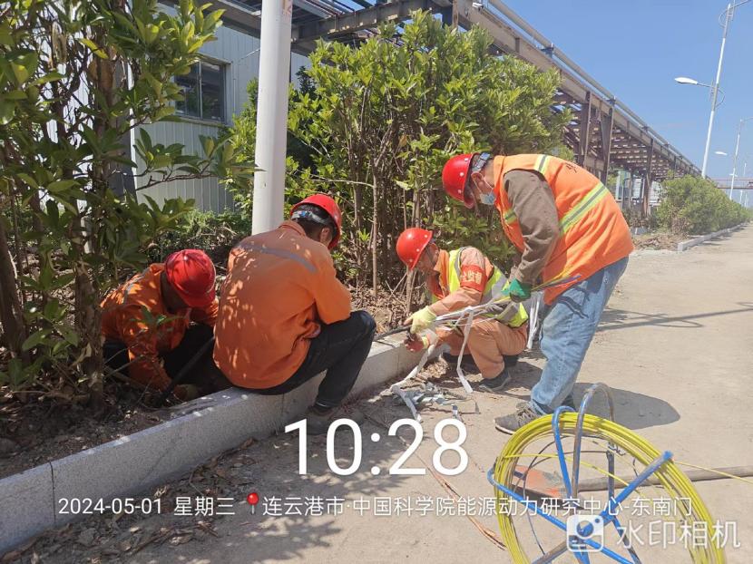 在中科院的路燈電纜施工現(xiàn)場,2000來米的電纜穿管工程時間緊任務重!舊路燈基座電纜孔全被泥土堵塞,穿線相當困難!在“老黃?!眴桃猿蓭ьI下,市政班組全員在崗,集思廣益克服困難。大家顧不上烈日當頭、蚊蟲叮咬,合起號子加油干,確保兩天拿下全部工程量。
