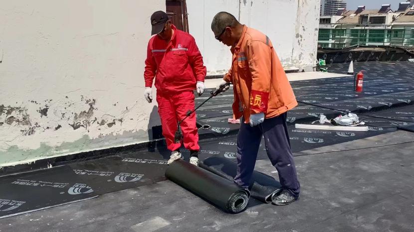 在昌圩湖大酒店樓頂防水工程施工現(xiàn)場,因屋面漏水嚴重影響酒店日常經(jīng)營。為了趕在雨季來臨之前完成全屋面防水工程,節(jié)日期間,有著“臺北防水第一人”稱號的丁祥生班長帶領班組成員連日奮戰(zhàn)在施工現(xiàn)場。隨著噴槍烘烤著雨虹防水卷材,一米米的鋪設前進不斷縮短著距離。
