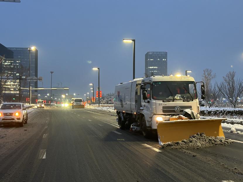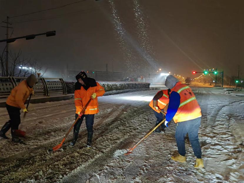 上午10時許,暴雪如約而至。裝有融雪劑的車輛全部整裝待發(fā),聞令而動,采取“人工+機械”不間斷作業(yè)模式,對轄區(qū)主次干道、橋涵、火車站東站、創(chuàng)智大廈等帶坡路段及時拋撒融雪劑,采取“滾刷+鏟車”組合方式,反復排掃路面積雪,確保主次干道、帶坡路段通暢無冰。
