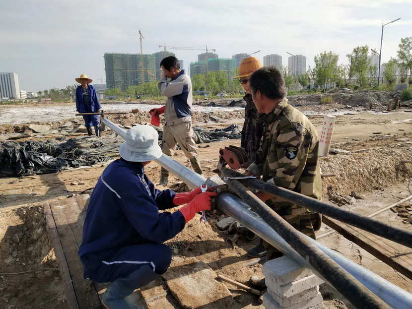 2022年初,面對堿廠關停、鹽灘被征收的嚴峻形勢,海州灣公司迅速調整生產策略,實施礦鹽復產工程及鈣液續產工程。礦鹽生產工程包含鹽池板整治、池堰修整、池堰固化、溝道疏浚以及修補塑布等多道工序。面對工程量大、工期緊情況,陳同富帶領班組職工加班加點,放棄節假日,奮戰在生產一線,搶抓有利天時,確保在小滿前完成灌池工作。