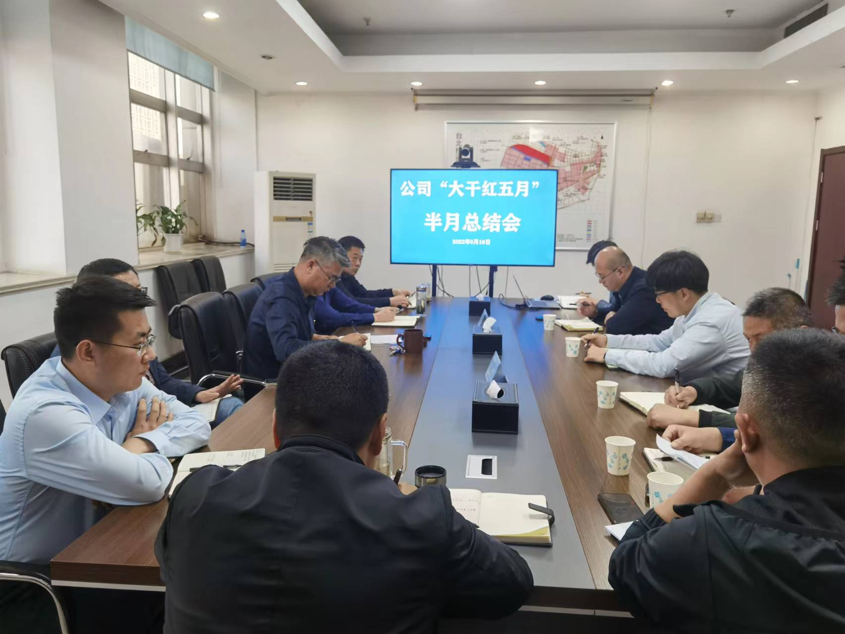 為快速高效推進“大干紅五月”工作,517日,投資公司在四樓會議室召開“大干紅五月”半月總結會。公司領導班子、基層各單位、部門負責人參加會議。各單位圍繞五月份指標匯報前期工作完成情況,并對下半月如何完成預期目標做了明確的闡述。會上,分管領導針對各單位的工作進行點評,結對部門匯報結對工作。