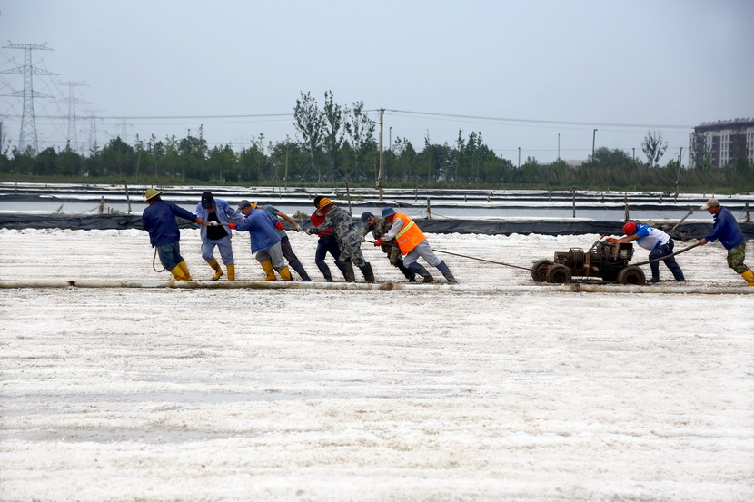 今年以來,針對政府征地、堿廠關(guān)停的現(xiàn)實(shí),投資公司積極推進(jìn)生產(chǎn)方式變革,打破一年兩季固有收鹽模式,實(shí)現(xiàn)原鹽隨用隨收。在海州灣先鋒東灘扒鹽一線,王德志仔細(xì)觀看了作業(yè)情況,現(xiàn)場收鹽職工正在進(jìn)行挪機(jī)工作。