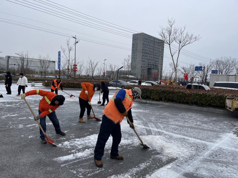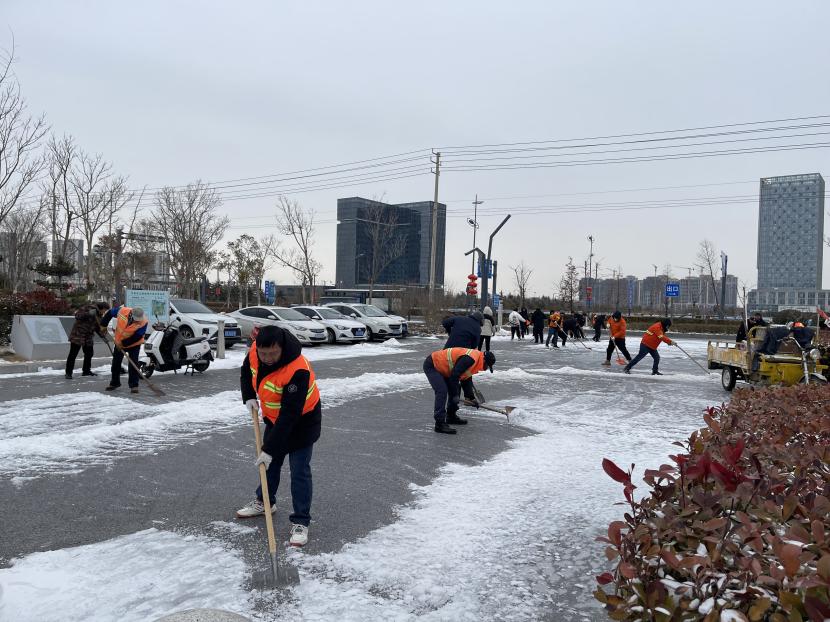 ? ? “風雪無情 志愿有愛”。活動中,大家不顧凜冽寒風,積極除雪、干勁十足,有的用鐵鍬鏟除冰塊,有的用掃帚清掃積雪。鐵鏟、掃帚與地面的摩擦聲此起彼伏,譜寫了悅耳動聽的清脆樂曲。志愿者一鐵鍬、一笤帚將積雪推至路邊,經(jīng)過連續(xù)奮戰(zhàn),園區(qū)內路面積雪得到及時清理,通行逐漸恢復順暢。