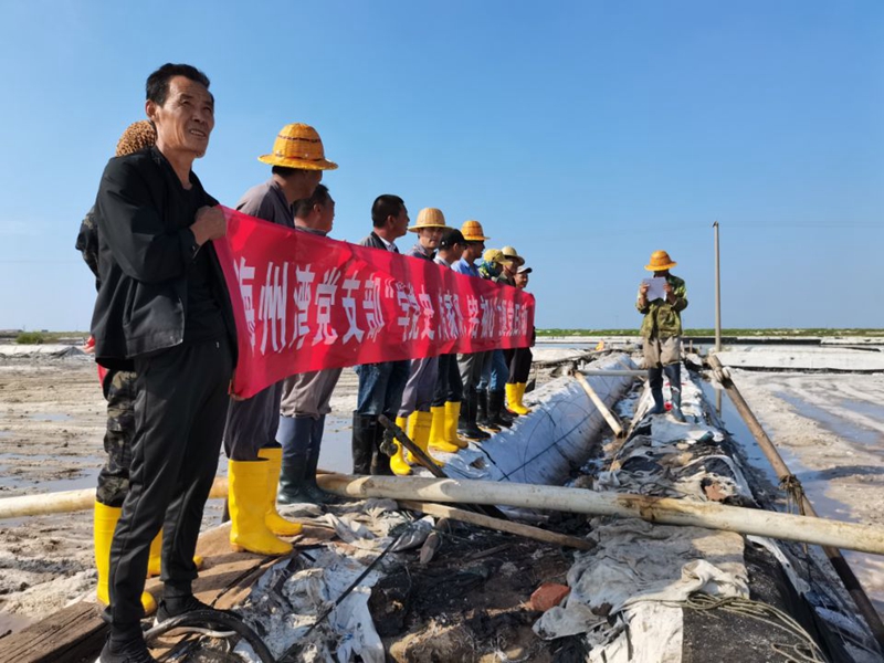 為進一步深化黨史學習教育,加強黨員和領導干部的家風建設,9月16日下午,海州灣黨支部結合解放戰爭史的學習,在大八組扒鹽現場開展“學黨史、傳家風、銘初心”主題黨日活動團結引領廣大職工傳承紅色家風,賡續精神血脈,堅定不移聽黨話、跟黨走,銘記黨史黨恩,弘揚家國情懷。