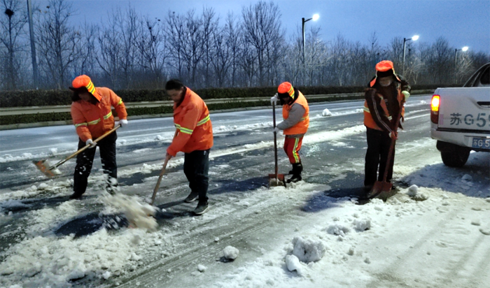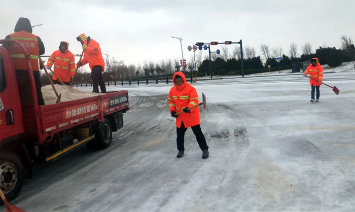 219日至21,受持續大風寒潮天氣影響,給徐圩新區、板橋工業園區各條道路蓋上較厚冰層。為全力以赴掃雪除冰、排除隱患,悅升公司堅持“人動機動、雪停雪凈”原則,落實好“三包三聯”工作機制,實現道路通暢、安全出行,切實保障好廣大群眾正常生產生活秩序和生命財產安全。
