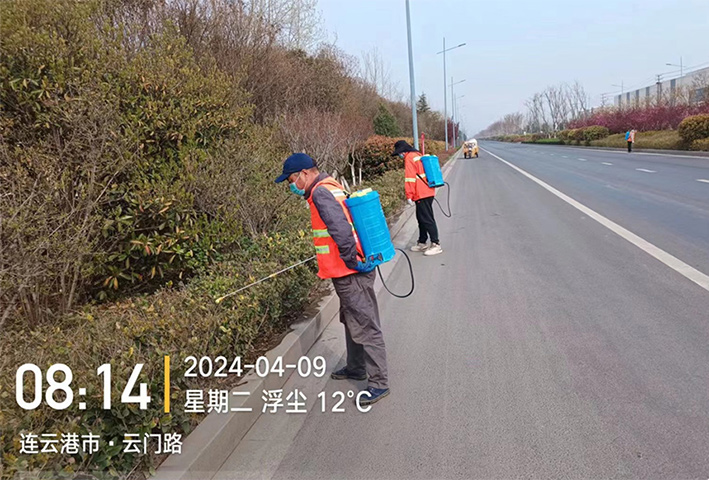 強化修剪重養護。該分公司以防為主,防治結合,全面開展春季病蟲害防治工作,對整個園區綠植面積 62萬平方進行全面施藥。序時開展園區綠化帶除草工作,四月上旬園區云港路,祥和路,金港路綠地雜草、落葉清理,清理面積25萬平方。積極打造綠化養護樣板路。突出祥和、云港重點路段,2班全面對祥和3期利用4天時間對所轄綠化帶采取人機結合全面除草,并根據苗木的長勢在正常養護工作的同時,開展春季病蟲害防治。定期安排補水,日澆水量50余立方,有效的促進苗木生長,全面掀起大干二季度工作熱潮。(劉永)