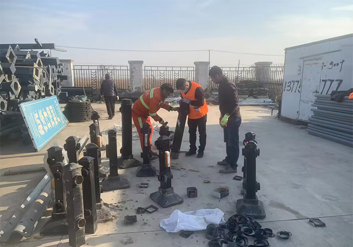 道路養護班組根據多日來梳理形成的問題清單,制定切實可行的維修方案,確保安裝質量和進度。在蘇海路維修更換老款護欄時,為了達到全路段護欄設施的整體性、連續性、統一性,養護人員積極作為,對先前更換拆下的老款護欄進行合理利用,相對完好的,用于同款護欄的補換及用于日后臨時應急道口封控保障等。
