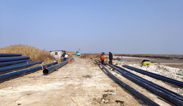 為確保工程順利實施,供水組一方面積極做好前期準(zhǔn)備工作,另一方面經(jīng)過實地勘察和技術(shù)論證,制定了科學(xué)可行的施工方案。施工從11月29日起正式啟動,過程中,嚴(yán)格按照操作規(guī)程安裝施工,各司其職。在先期挖掘管路泥土中,存在多地段淤泥地,需轉(zhuǎn)土圍堰加固并及時抽水護坡、熔接管道中,附近拋填土車輛較多,干擾大,考慮到安全等問題,及時調(diào)整方案,經(jīng)大伙兒共同努力,鋪設(shè)管道等各項工作有條不紊地順利進行。