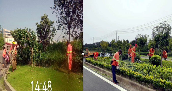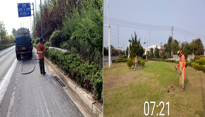 8月底,綠化養護班組兵分兩路強化綠地草坪進行疏草、除雜等養護工作,對綠植進行清枯枝、病蟲枝整形修剪,保持喬灌木的整體外形美觀;集中力量加固樹撐,清除雜草2萬余平方米。